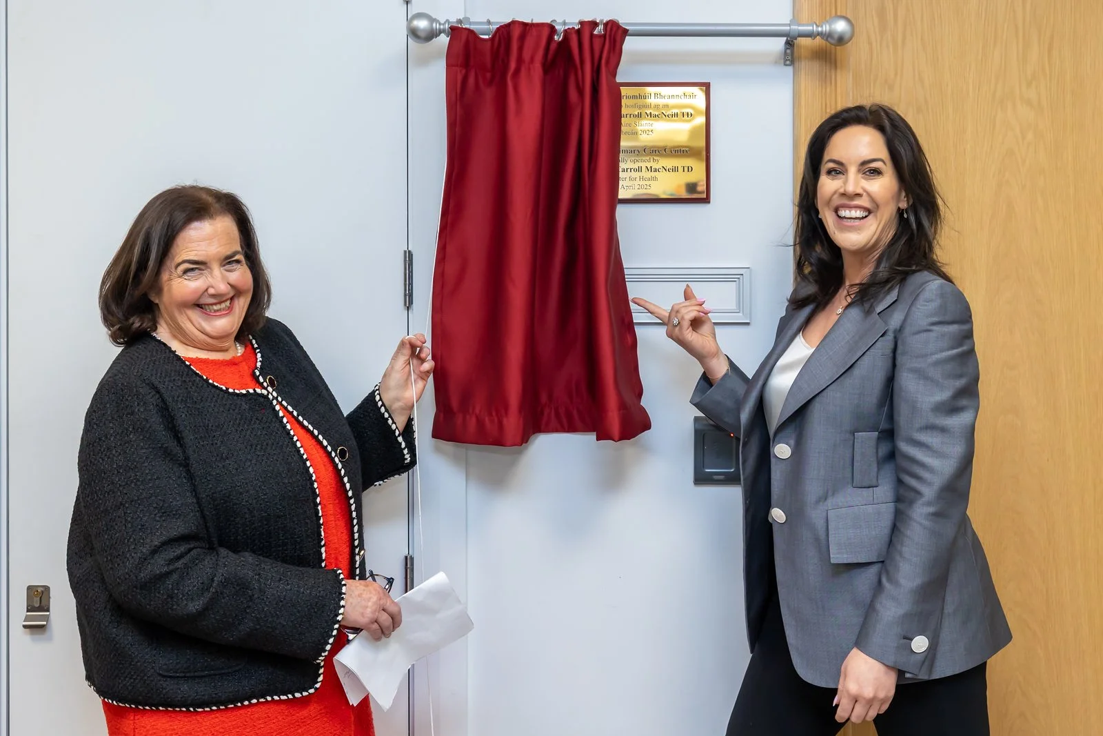 Dr Velma Harkins (retired) and Dr Jennifer Carroll MacNeill unveil the plaque at the opening of the Primary Care Centre